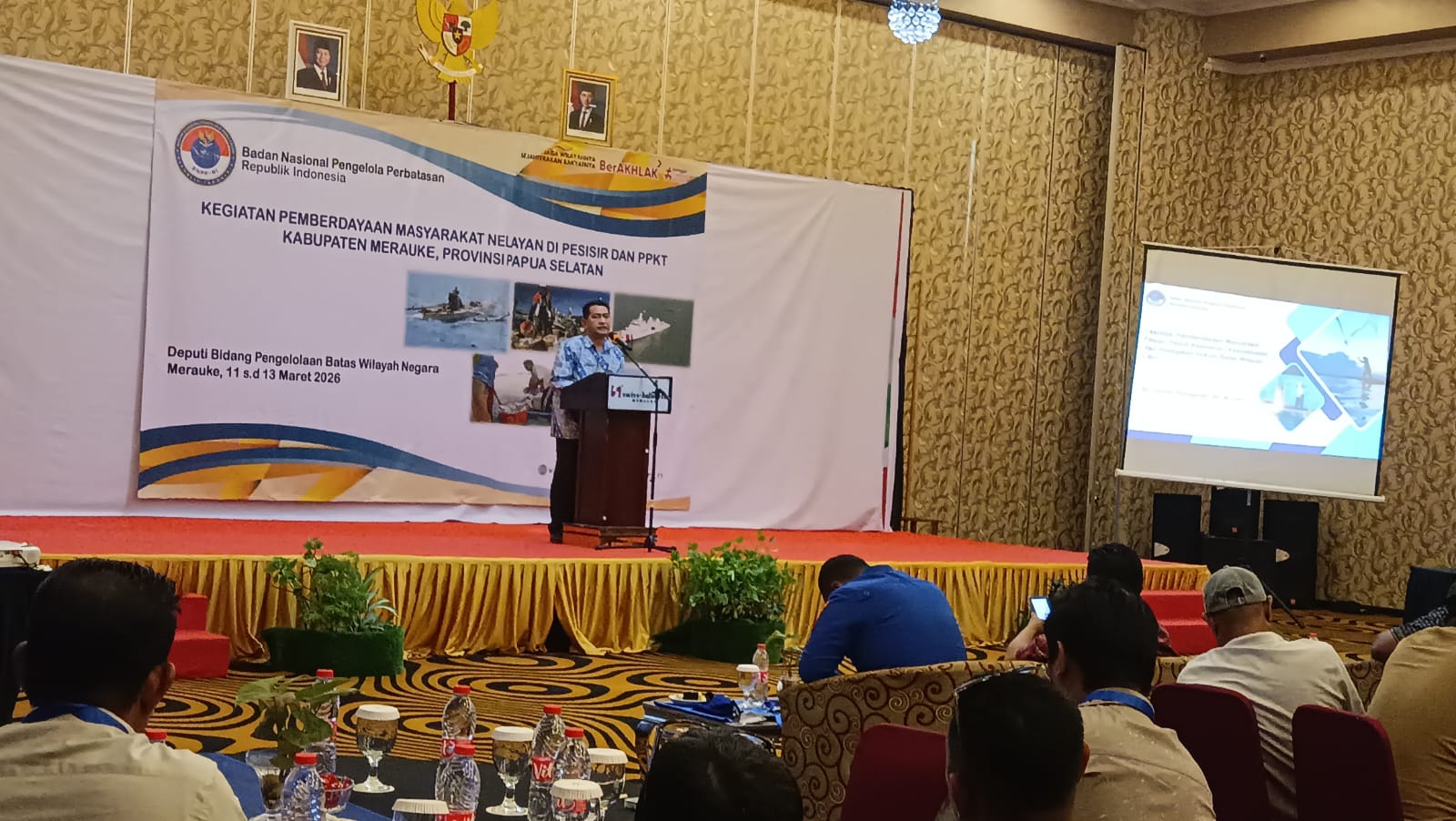 Merauke - Seringnya terjadi pelanggaran hukum di perbatasan perairan negara di Merauke, Papua Selatan, Deputi Bidang Pengelola Batas Wilayah Negara pada Badan Nasional Pengelola Perbatasan (BPPN RI) selenggarakan kegiatan pemberdayaan masyarakat nelayan di pesisir dan PPKT Kabupaten Merauke Papua Selatan, Kamis, (12/3/2026).