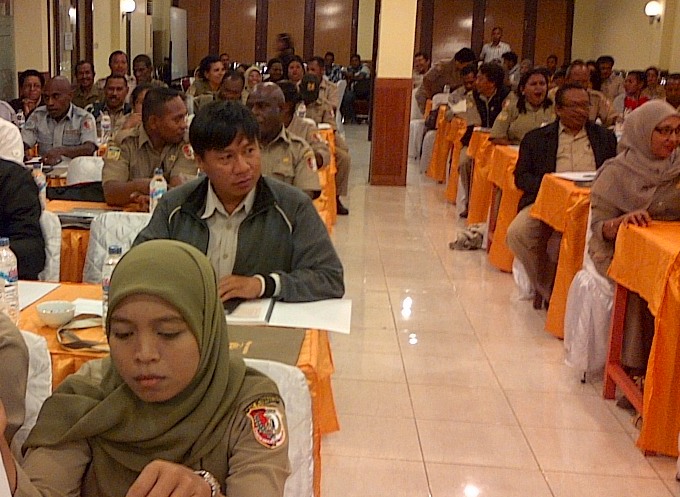 Pelatihan Tenaga Penyuluh Lapangan Pengendalian Penggunaan Bahan Bakar Minyak (BBM) yang diselenggarakan oleh Kementrian Energi dan Sumber Daya Mineral dibuka oleh Ass. II Setda Kabupaten Merauke , Drs. M.Teurupun, M.Si di Hotel Itese, Senin (1/7).