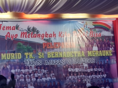 Anak-anak merupakan salah satu Regenerasi penerus bangsa Indonesia yang perlu kita bina, bimbing, dan kita didik untuk menjadi penerus bangsa Indonesia baik itu lewat sisi pendidikan maupun keagamaan, ini merupakan salah satu contoh dari pelaksanaan Perpisahan anak-anak TK Santa Bernadeta Nol Besar khususnya dimana anak-anak ini telah lama dididik dibina dan dibimbing oleh Suster dan Bunda-bunda mereka di sekolah, dan pada saat perisahan sekolah mereka tidak canggung-canggung untuk mengexplotasikan dan mengimplementasiakan hasil karya lewat permainan Drama fragmen, menari, fashion show, dan dan ucapan trimakasi yang dibacakan oleh anak murid Tk Santa Benadeta anak-anak ini sangat bagus dalam pertunjukan mereka diatas panggung, ini berkat bimbingan oleh bunda-bunda/guru-guru maupun suster-suster di pentas Anggasai Pertunjukan sangat meriah dengan aksi dan karya anak-anak kita dia atas panggung, kami sebagai orang tua sangat bertertima kasih atas didikan dan karya-karya yang telah dituangkan bagi anak-anak kami dan kami melihat telah melihat hasilnya sangat berkualitas itu terbukti lewat atraksi-atraksi yang di pertunjukan oleh anak-anak kita diatas panggung Anggasai kabupaten Merauke tanggal 12 Juni 2015. Terimaksih Bu Guru atas jasa-jasamu yang sudah engkau berikan pada kami selama kami di Sekolah dan Slamat berpisah jasaMu selalu kukenang didalam Hatiku lewat nyanyaian anak-anak Kasih Ibu dan Himne Guru. Lewat Tema ayo melangkah anak-anak kita pasti bisa.