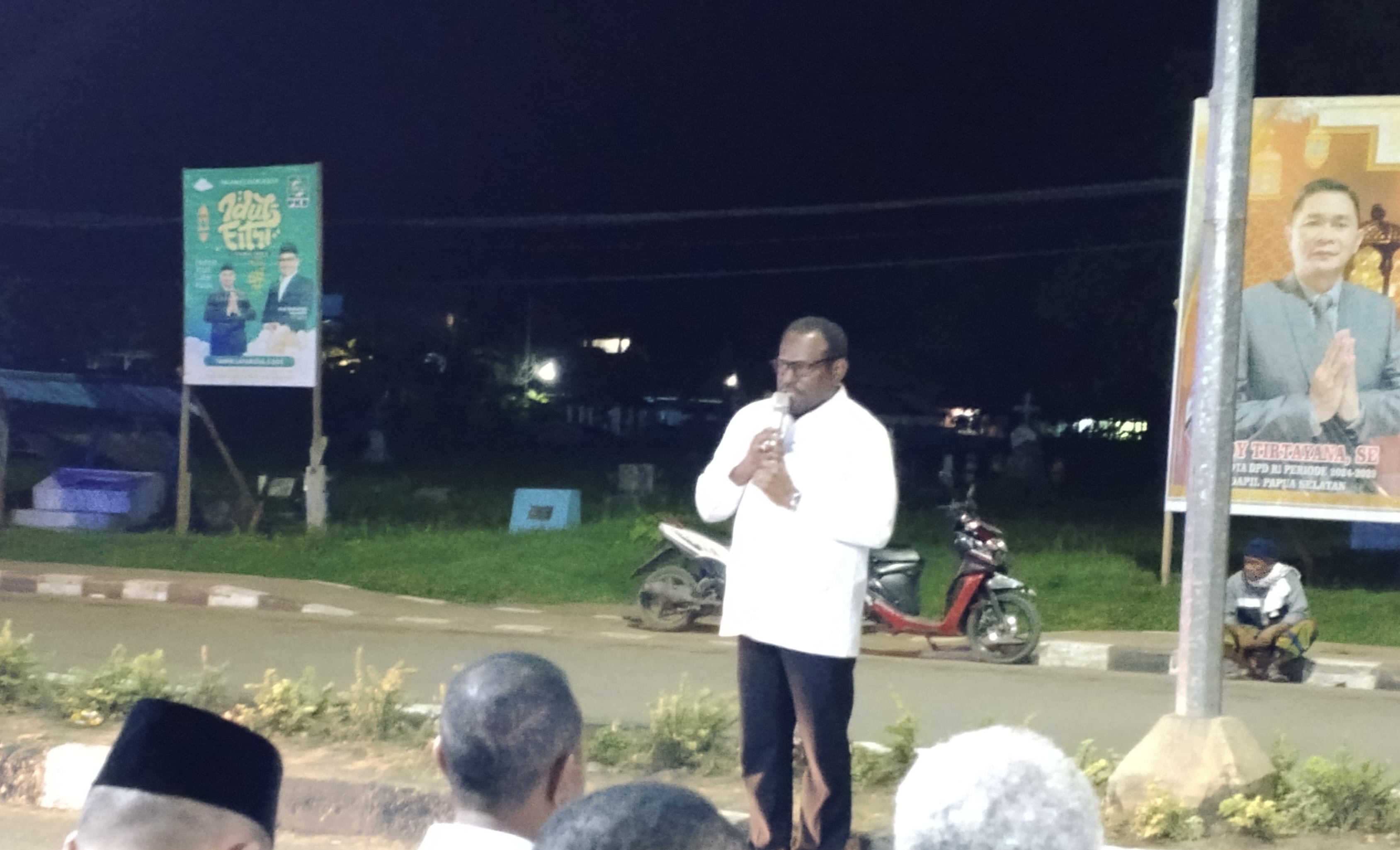 Merauke - Sama-sama menghadiri malam takbiran 1 syawal 1446H pada Minggu (30/3/2025) di Merauke, Gubernur Papua Selatan Apolo Safanpo dan Bupati Merauke Yoseph Bladib Gebze sampaikan pesan iman dan ajakan toleransi .