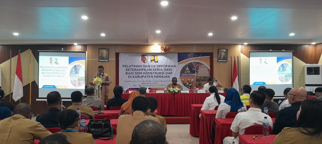 Merauke - Dinas Pekerjaan umum dan Penataan ruang Kabupaten Merauke selenggarakan pelatihan dan uji sertifikasi ketrampilan kerja (SKK) bagi SDM Konstruksi OAP di Kabupaten Merauke, Senin, (14/7/2025).