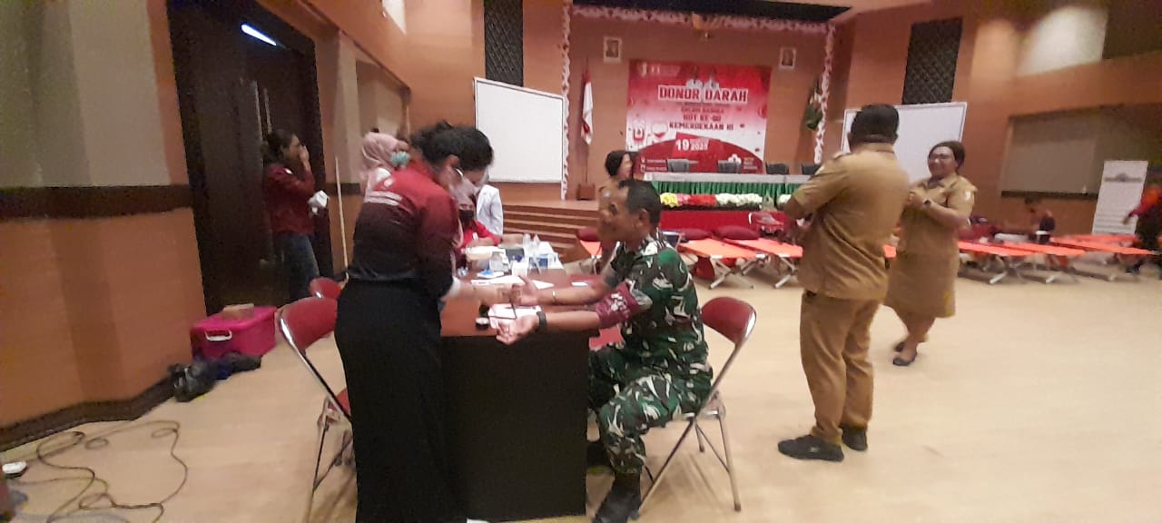 Merauke - Masih semangat HUT ke 80 Kemerdakaan RI 2025, ASN, BUMN, TNI dan Polri di Kabupaten Merauke ikut donor darah, Selasa, (19/8/2025) di Auditorium Kantor Bupati setempat.
