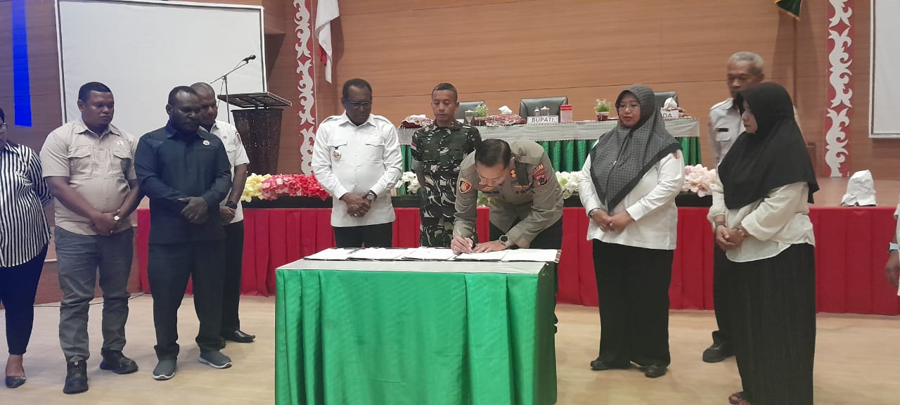 Pemkab Merauke Lakukan PKS Bersama TNI-Polri Tentang Pendampingan Satuan Pendidikan