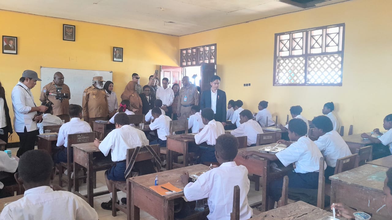 Kesempatan tersebut, Wapres didampingi Wakil Bupati Merauke Fauzun Nihayah, Wagup Papua Selatan Paskalis Imadawa, Kadis Pendidikan Provinsi Ignasius Babaga dan Kadis Pendidikan Merauke, Romanus Kande Kahol memantau langsung kegiatan program Makan Bergizi Gratis (MBG) di sekolah itu sambil berkomunikasi dengan siswa.