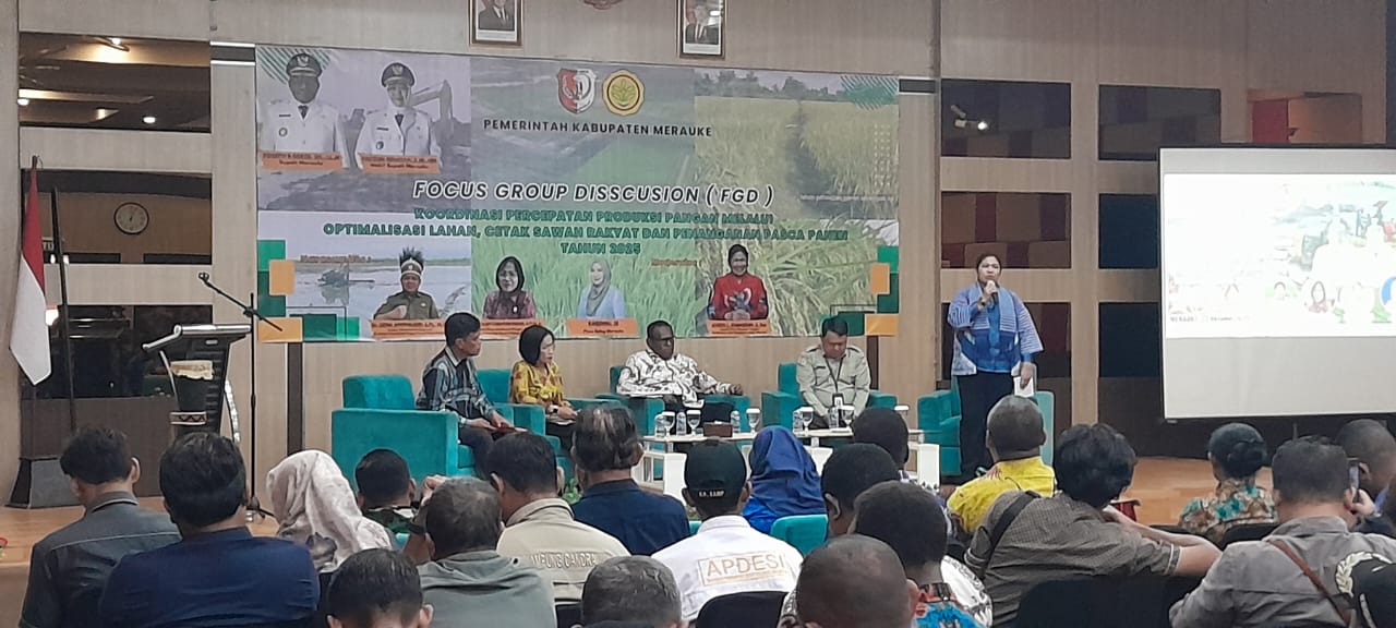 Dalam FGD ini ada pemaparan dari Bulog, Dinas Ketahanan Pangan, Peternakan dan Kesehatan Hewan, Satgas Swasembada Pangan Papua Selatan dan Dinas Pertanian dan Hortikultura setempat dihadiri seluruh pihak terkait terutama ketua gabungan kelompok tani. Kemudian dilanjutkan sesi tanya jawab dan pembahasan keluhan di lapangan dan solusi yang akan diambil.(Get)