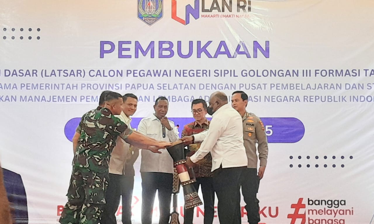 Merauke - Bupati Merauke Yoseph Bladib Gebze didampingi Wakil Bupati Fauzun Nihayah meresmikan Sekolah Rakyat Terintegrasi 77 Merauke, Senin, (27/10/2025).